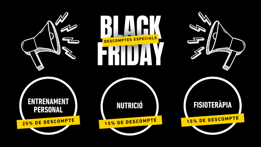 Reserva la teva sessió abans del 30 de novembre a la recepció del centre i fes que aquest Black Friday sigui el primer pas cap a una vida més saludable. 🖤💚